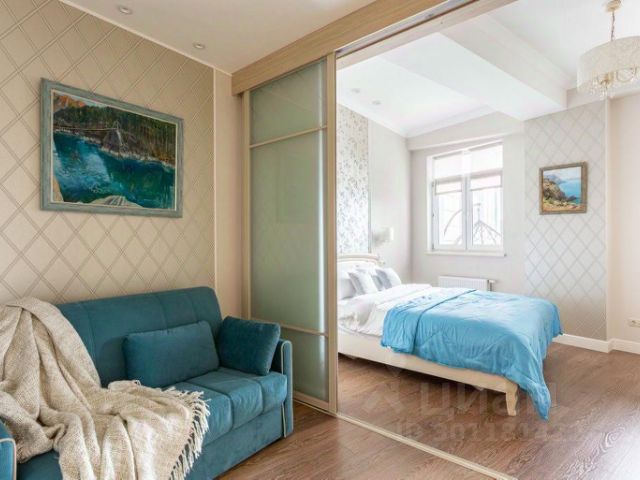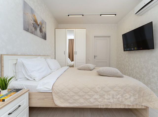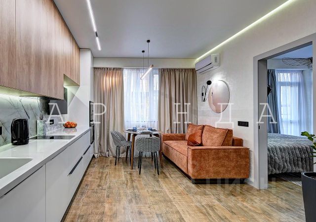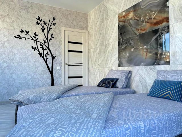1. Отдельные 2 спальни для качественного сна с двуспальными кроватями, а также совмещенная кухня с гостиной и двуспальным раскладным диваном.
