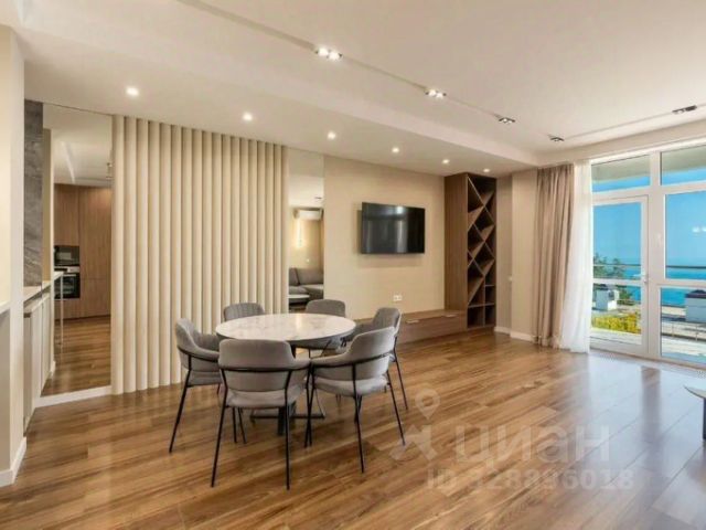 Наш комплекс расположен в 15 минутах от центра Сочи, апартаменты премиум класса с охраняемой территорией и собственной инфраструктурой! Клубная концепция с бассейнами, ресторанами в окружении тропических растений и свежим морским воздухом! Трёхкомнатная квартира с потрясающим видом на море, витражные окна в пол и открытый балкон с маркизой! 2 спальные комнаты, в прихожей большой шкаф. Квартира с новым ремонтом, полностью укомплектована всем необходимым, включая постельное бельё и полотенца на всех гостей. Кухня оборудована посудомоечной машиной, в каждой комнате установлен кондиционер. Для вас доступно: - Подогреваемые бассейны с лежаками и зонами бунгало (май-ноябрь) - Два ресторана с возможностью заказа блюд в апартаменты - Бесплатная парковка Территория для прогулок с тропическими растениями, потрясающими видами на море и город Для детей на территории нашего комплекса предусмотрены детские площадки, бассейн с дежурными спасателями, специальное меню в ресторане, а также частный детский сад с развлекательными и обучающими программами. До ближайшего пляжа 10 минут на машине, у нас своя дорога по которой вы без пробок можете ездить на пляж!