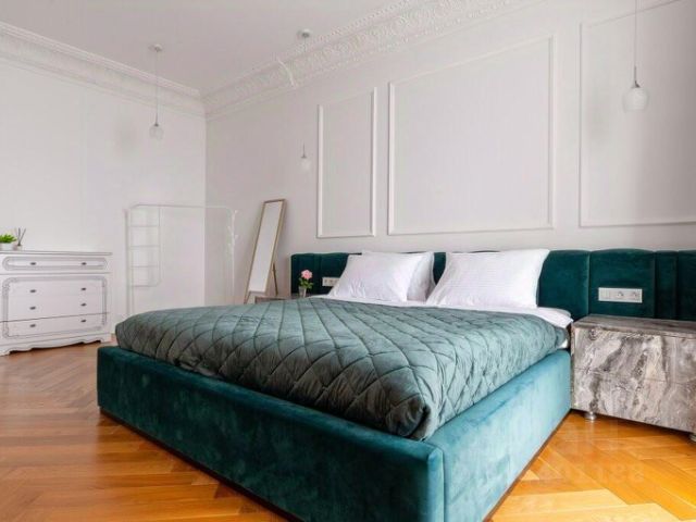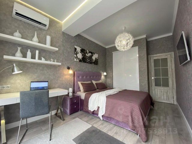 В квартире три изолированные комнаты-спальни: мастер-спальня, детская комната, гостевая спальня и общая зона: кухня-гостиная.