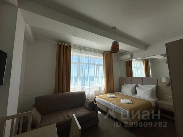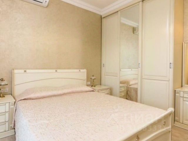 Кроме этого в спальне есть большие шкафы, отдельный санузел, огромный телевизор, акустическая система, панорамные окна со шторами блэк-аут.