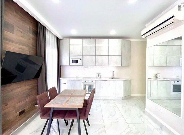 Квартира оборудована - высокоскоростным интернетом, smart-tv с цифровым телевидением, системой кондиционирования.