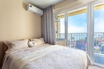 Квартира укомплектована всем необходимым для комфортного проживания. Название квартиры Пудра Гостиная и кухонная зоны совмещены. Гостиная зона: двуспальный диван, ЖК телевизор. Изолированная спальня: двуспальная кровать. Кухонная зона: электрическая плита, вытяжка, холодильник, посудомоечная машина, микроволновая печь, электрический чайник, кухонный стол, стулья, столовые приборы и посуда. Прихожая Гардеробная Wi-Fi, два кондиционера, утюг, гладильная доска. Ванная комната: раковина с зеркалом, унитаз, ванна, стиральная машина, полотенцесушитель, сушилка для белья, фен. Постельное бельё и махровые полотенца по количеству гостей, включены в стоимость. Балкон: стол, два кресла. Вид на: море и горы.
