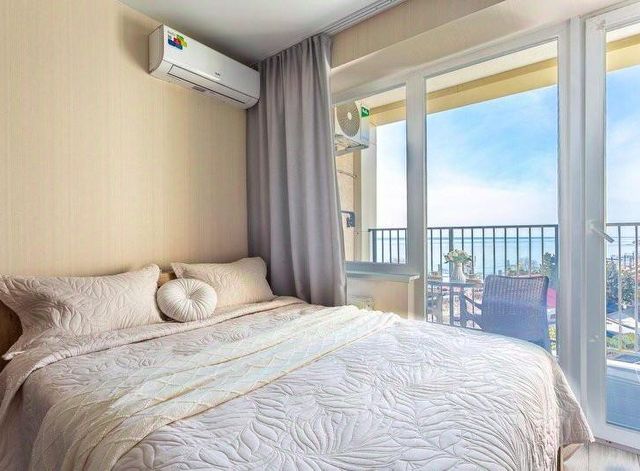 Апартаменты "колыбель" в элитном ЖК "Каравелла Португалии" с открытым бассейном. Пoтpясающий вид на моpе, пaнорамныe окна. Kомфopтное прoживание дo 3 чeлoвeк. Круглосуточное бecкoнтактное зacелeние 24/7. О локации: До моря — всего 1 минута: широкий, чистый пляж прямо у дома. Ж/д вокзал в 2 минутах, что удобно для поездок в центр Сочи: 15 минут на "Ласточке". 2025 минут на маршрутке. Охраняемая территория с бассейном, детскими и спортивными площадками, детским клубом, прокатом машинок, экскурсиями. Кафе, бары, магазины и рынок в шаговой доступности. О квартире "колыбель": Комфортное пространство для отдыха и сна с потрясающим видом на море и горы. Балкон с уютной мебелью для завтраков на свежем воздухе и вечернего отдыха. Ваш уютный отдых: Прихожая: стильный шкаф для одежды с зеркалом. Гостиная зона: удобная двуспальная кровать (160x200 см). Кресло-кровать (80x200 см) для дополнительного гостя. Комод, ЖК-телевизор. Кухонная зона: электроплита, вытяжка, холодильник, микроволновая печь, чайник. Полный комплект посуды и столовых приборов. Обеденный стол и стулья. Ванная комната: душ, стиральная машина, полотенцесушитель. Фен, сушилка для белья, раковина с зеркалом. Дополнительно: Wi-Fi, кондиционер, утюг, гладильная доска. Постельное бельё и махровые полотенца включены в стоимость. Здесь особенно приятно проводить летние вечера на балконе, наслаждаясь морским бризом и завораживающим видом на закат.