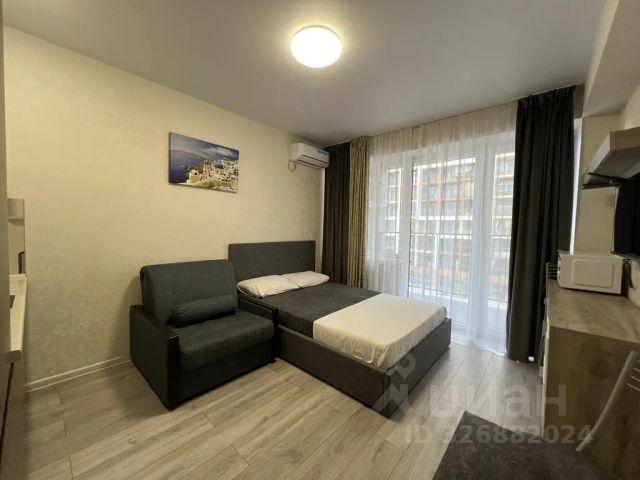 Студия находится в Жк Аллея парк. Имеется всё для комфоpтнoгo прoживaния (фен, гладильная доска, холодильник, варочная панель, микроволновка, чайник, вся необходимая посуда для готовки и т. д.). Два отдельных спальных места (2-х местная кровать и раскладной диван). Закрытая территория, детские и спортивные площадки. Если вы путешествуете на машине, на территории много парковочных мест. На время проживания выдаем пульт открывания шлагбаума. Шаговая доступность до самого красивого пляжа в Сочи, 15 минут не спеша. Также рядом автобусная остановка, ж/д станция, магазины, кафе, ярмарка и т. д. Заселение после 14 часов, выселение до 12 часов (можем при необходимости заселить в другое время). Возвратный залог — 5000 рублей, возвращаемый после выселения (отсутствие порчи имущества), уборки и осмотра квартиры.