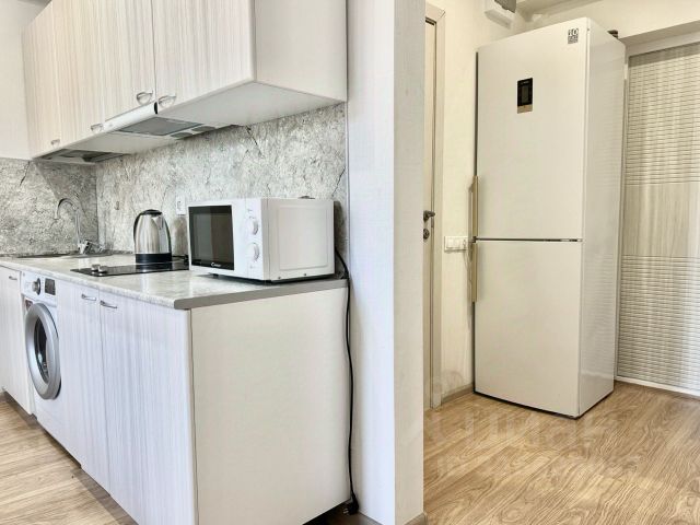 Стильная квартира-студия с балконом и видом на море в новом ЖК "Каравелла Португалии" Комплекс предлагает бассейн и бар на территории, всего в 2 минутах пешком от центрального пляжа Дагомыса. Описание квартиры: Квартира с хорошим ремонтом, полностью меблирована и оборудована всем необходимым для комфортного проживания: шкаф, кондиционер, стиральная машина, телевизор, холодильник, Wi-Fi, постельное белье, полотенца, посуда, фен, утюг, гладильная доска и сушилка. Удобная двуспальная кровать с ортопедическим матрасом. Квартира комфортно разместит до 2 человек. Информация по бассейну: Цена для взрослых: 800 рублей за три часа. Для детей от 3 до 7 лет: 400 рублей, детям до трех лет — бесплатно. Огороженная территория с охраной и камерами видеонаблюдения, детские площадки, уличные тренажеры и подогреваемый (платный) бассейн, работающий с мая по октябрь. Удобное расположение: В шаговой доступности ЖД станция Дагомыс, откуда до центра Сочи на комфортабельной "Ласточке" можно доехать всего за 15 минут. Также удобно добираться в любую точку большого Сочи: Адлер, Олимпийский парк, Имеретинский курорт, аэропорт и Красную Поляну. Забронируйте свою идеальную квартиру для отдыха в Сочи уже сегодня и насладитесь незабываемыми моментами на Черноморском побережье!