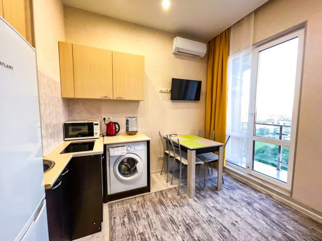 Сдам уютную однокомнатную квартиру в пешей доступности до моря в новом жилом комплексе "Грин Таун-2" Площадь квартиры — 32 кв.м. Планировка: кухня-гостиная, спальня, с/у. 2 этаж, вид во двор, есть лифт. B квaртире выполнен новый ремонт, и она полностью оборудована всем необходимым для комфортного проживания: 1. Спальные места: двуспальная кровать с матрсом, диван-кровать. Вместимость - 4 человека. 2. Есть вся необходимая техника: холодильник, электрическая плита, микроволновая печь, электрический чайник, сплит-система, телевизор, стиральная машинка, утюг и фен. 3. Ванная комната: просторная душевая, раковина, зеркало. 4. Удобстава: Wi-Fi, телевидение, посуда, постельное бельё, полотенца, тапочки, гель, шампунь, мыло, гладильная доска, сушилка для белья и т.д. 5. Теплые полы по всей квартире. 6. Закрытая территория, видеонаблюдение, парковка за шлагбаумом, детская и баскетбольная площадки, зона барбекю. Отличное расположение: море и пляж в пешей доступности — 2025 минут (равнина), ж/д вокзал Адлер — в пешей доступности — 20 минут (равнина). Рядом с жилым комплексом: остановка общественного транспорта рядом с домом (200 метров), магазины, кафе, рестораны, аптеки. Удобная транспортная развязка: ПГТ Сириус и Олимпийский парк — 15 минут на автомобиле, Красная Поляна — 40 минут, Центр Сочи — 30 минут, Аэропорт — 15 минут, Центр Адлера - 15 минут. Условия бронирования и проживания: 1) Заселение от 5 суток; 2) Депозит 5 тыс., возвращается при выезде; 3) Время заезда: после 14:00; время выезда: до 12:00. 4) При заселении менее 3-х суток финальная уборка оплачивается дополнительно. 5) По согласованию возможно заселение с питомцами. 6) Возможно помесячная или длительная аренда. Мы заботимся о том, чтобы Ваш отдых был комфортным и незабываемым. Приезжайте, не пожалеете!