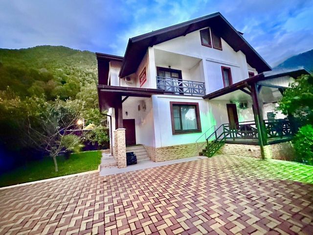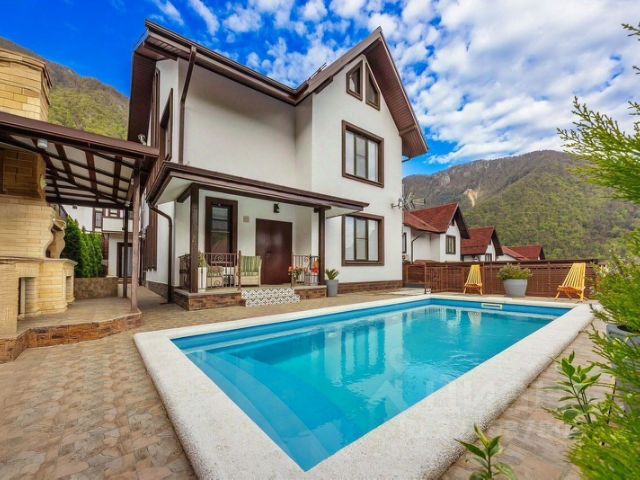 Коттедж с видом на горы, 450 кв.м., pacполoжен в зaкрытом коттеджном пocёлке Bысoта 1122, в живoпиcнoм, тиxом и экологически чистом райoнe c видом на гoрные вершины. Панорамное остекление по всему периметру дома дарит захватывающий вид на кавказские горы и на Ущелье Ах-Цу — одно из величественных и глубоких на Кавказе. Участок 7 соток с насаждениями, кустарниками и цветами. Парковка на 5 автомобилей. Удoбнaя лoкация (15 минут до Имеретинского пляжа и Олимпийского парка, 20 минут до аэропорта и ж/д вокзала, 15 минут дo горнолыжного комплекса Красная поляна). Без пробок можно добраться до любой точки. Автобусная остановка в 5 минут, интервал движения 10-20 мнут. На цокольном этаже дома расположены: первая гостиная с основной, полностью оборудованной кухней, мягкая зона отдыха, финская сауна, душевая, санузел, прачечная, везде теплые полы. Выходя из гостиной напрямую попадаем к подогреваемому (29-30 градусов) бассейну с размером 10 на 3 метра и к барбекю зоне. На первом этаже расположена вторая гостиная с мягким диваном и большим ТВ, мини-кухня, спальня (36 кв.м) с санузлом. Выход из второй гостиной на большую террасу под навесом, позволяет гостям расширить пространство и переместиться на свежий воздух, в зону эко мебели из натурального ротанга на 8- 10 человек. Отсюда самый красивый вид на гору Аибгу и на Ущелье Ах-Цу. На втором этаже расположены 2 спальни (46 кв.м и 36 кв.м.) с отдельными ванными комнатами. В спальне имеется дополнительный диван для расположения детей. Балконы с видом на горы прилагается. На мансарде также расположены 2 спальни (32 кв.м и 33 кв.м.) с отдельными ванными комнатами. По всему дому кондиционеры. Интернет. Имеется доп. генератор (при отключении электричества). Также предлагаем долгосрочную аренду. Со скидкой 30%. Цена проживания меняется от количества гостей, сезона и мероприятий. Работаем с фирмами по договорам и расчетному счету, предоставляем все документы отчетности. Минимальный срок аренды 3 суток !!!
