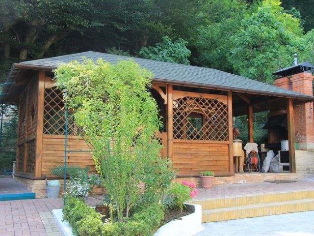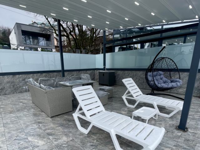 Сдадим дом в долгосрочную аренду в центре Мацесты в окружении гор, зелени и всей инфраструктуры! ПЛАНИРОВКА: В цокольном этаже гараж на 2 машины, котельная, спортивный зал оборудованный тренажерами и шведской стенкой, летняя кухня c прачечной ( или помещение для проживание персонала). - На 1 этаже расположены: центральный вход и холл площадью 20 кв.м., кухня 20 кв.м., столовая 25 кв.м. с камином и лоджия площадью 20 кв.м., кабинет площадью 18 кв.м., санузел площадью 15 кв.м. , сауна и комната отдыха - На 2 этаже расположены холл площадью 30 кв.м., две спальные комнаты соответственно 20 и 26 кв.м. с лоджией площадью 24 кв.м., детская комната площадью 24 кв.м. . Все спальные комнаты сообщаются с санузлами,(2 шт), в которых имеются ванна-джакузи, душевая, бидэ, унитазы и умывальники выполненные из натурального мрамора. - На 3 этаже расположен холл площадью 18 кв.м., две спальные комнаты по 28 кв.м., с санузлами и гардеробными комнатами. Спальная комната с выходом на юго-восточную сторону имеет балкон площадью 16 кв.м. с прекрасными видовыми характеристиками. На 3 этаже, также, расположены, кладовые, техническое помещение для теле-видеоаппаратуры, мини-кухня. УЧАСТОК: На земельном участке имеется ухоженный сад, с фруктовыми деревьями, палисадник-цветник , теплица для круглогодичного выращивания овощей, а также большая беседка площадью 50 кв.м. с водоснабжением, электричеством, мангалом и русской печью. Двор частично мощен брусчаткой, имеются удобные подъездные пути. Характеристика домовладения Дом построен из бетона и кирпича. Расположен на земельном участке 16 соток, общая площадь дома 590 кв.м. Техническая характеристика Установлена канадская охранно-пожарная сигнализация "Paradox", система резервного электроснабжения "Honda"( 12 квт) , работающая на солярке мощностью 12 кв.Вт, с обеспечением электроснабжения сроком до 72 часов без дозаправки соляркой. Охрана осуществляется посредством охранной системы канадской фирмы "Paradox" по всему периметру участка с выводом на пульт централизованной охраны ООО "Охрана плюс" с синхронной свето-звуковой сигнализацией и релейным управлением на брелке. Домовладение , также снабжено системой видеонаблюдения, имеется городской телефонный номер, а для связи между этажами стоит телефонная мини АТС станция " Panasonic", в дом заведен кабель скоростного интернета (опто-волокно) с. Для приема сигнала НТВ-+ на крыше домовладения расположена тарелка "SAT". В дом проведен высокоскоростной интернет (опто-волокно), что позволяет получать ТВ изображение через интернет, пользоваться беспроводной системой видеонаблюдения и.т.д.