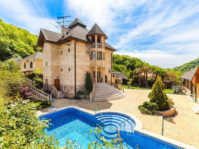 Сдаётся в аренду большая резиденция в Сочи. в селе Мацеста, ул. Береговая, в престижном коттеджном посёлке, статусные соседи. Состоит из главного дома с подземным паркингом, патио, летней кухней, кальянная комната с комнатой отдыха, винный погреб, зимний камин, банный комплекс, бассейн, более 10 соток свободной земли для сада, большой двор. Основной дом: Цокольный этаж - автопарковка, котельная, постирочная Первый этаж - Большая прихожая, кухня, гостиная, терраса, сан узел. Второй этаж - три спальни, каждая с балконом. сан узел. Третий этаж - зона отдыха: бильярд, барная стойка (кухня), сан узел. Балконы с прекрасным видом на горы. Коммуникации: электричество - центральное вода - центральная, и есть своя скважина газ - центральный канализация - ЛОС. Аренда на долгий срок. Один месяц 650 тыс Р. Депозит - 650 тыс Р
