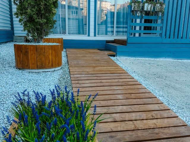 Просторное место отдыха с проектором - кинотеатр на свежем воздухе.