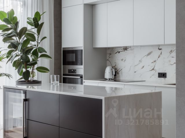 Полностью оборудованная кухня: посудомоечная машина, плита, микроволновка, чайник, тостер, кофемашина.