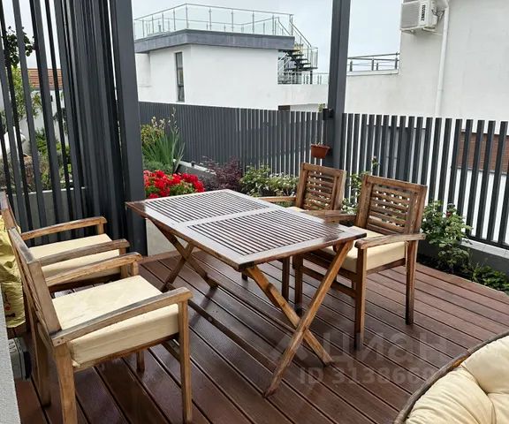 На террасе стиральная машина с функцией сушки белья, кондиционер, кухня: двухкомфорочная индукционная стеклокерамическая варочная поверхность (для быстрого приготовления любых блюд), посуда для индукции, холодильник, микроволновая печь, кофеварка, электрический чайник, посуда, столовые приборы, столы, садовые стулья, шезлонги, раскладывающийся в 5 табуретов пуф. Пол на террасе из натуральной деревянной террасной доски. На холодное дождливое время года на пол уложен ковёр, а терраса "остеклена" мягкими прозрачными окнами для комфорта и удобства наших гостей. На лето прозрачный потолок террасы притенён шторами.