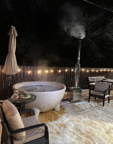 В доме газовый котёл, тёплые полы в коридоре и кухне, батареи в комнатах, в котельную отдельный вход. В дождливое время террасу опоясывают стены из гибкого стекла, также устанавливаются инфракрасные обогреватели, терраса используется в холодное время.