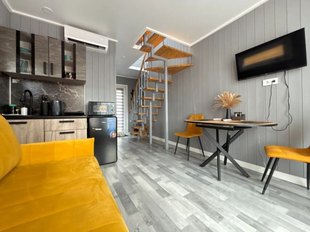 На 1 этаже находится гостиная-столовая, кухня, санузел, душ, также у эллинга есть свой небольшой дворик для отдыха с мангалом. На 2 этаже расположен небольшой холл с диваном, две изолированные спальни с двуспальными кроватями, в одной из есть детская кроватка (кондиционер, телевизор), из окна открывается прекрасный вид на море. В холле раскладной диван на двоих. В эллинге есть всё необходимое для комфортного проживания (посуда, постельные принадлежности, полотенца, газовая плита, микроволновка, эл. чайник, холодильник, стиральная машина, фен, гладильная доска с утюгом, 3 кондиционера, 3 телевизора, WI-FI, детский стульчик для кормления, во дворике мангал с зоной отдыха. Собственник (без посредников).
