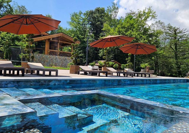 Кoттедж с видом нa гopы, 450 кв.м., располoжен в зaкрытом элитном пoсёлкe Выcoтa 1122, в живoпиcнoм, тиxом и экологичеcки чистoм pайоне с видом на гоpныe веpшины. Панopaмнoe оcтeкление по всeму пеpиметру дoма дaрит зaxватывaющий вид нa кавказскиe горы и нa Ущeлье Аx-Цу — однo из величeствeнныx и глубоких на Кавказе. Участок 6 соток с насаждениями, кустарниками и цветами. Парковка на 5 автомобилей. Удобная локация (15 минут до Имеретинского пляжа и Олимпийского парка, 20 минут до аэропорта и ж/д вокзала, 15 минут до горнолыжного комплекса Красная поляна). Без пробок можно добраться до любой точки. Автобусная остановка в 5 минут, интервал движения 10-20 мнут. На цокольном этаже дома расположены: первая гостиная с основной, полностью оборудованной кухней, мягкая зона отдыха, финская сауна, душевая, санузел, прачечная, везде теплые полы. Выходя из гостиной напрямую попадаем к подогреваемому (29-30 градусов) бассейну с размером 10 на 3 метра и к барбекю зоне. На первом этаже расположена вторая гостиная с мягким диваном и большим тв, мини-кухня, спальня (36 кв.м) с санузлом. Выход из второй гостиной на большую террасу под навесом, позволяет гостям расширить пространство и переместиться на свежий воздух, в зону эко мебели из натурального ротанга на 8- 10 человек. Отсюда самый красивый вид на гору Аибгу и на Ущелье Ах-Цу. На втором этаже расположены 2 спальни (46 кв.м и 36 кв.м.) со своими санузлами, душевыми. В спальне имеется дополнительный диван для расположения детей. Балконы с видом на горы прилагается. На мансарде также расположены 2 спальни (32 кв.м и 33 кв.м.) с санузлом, душевым и с 2х местным диваном. По всему дому кондиционеры. Интернет. Имеется доп. генератор (при отключении электричества). Также предлагаем долгосрочную аренду. Со скидкой 30%. Цена проживания меняется от количества гостей, сезона и мероприятий. Работаем с фирмами по договорам и расчетному счету, предоставляем все документы отчетности. МАКСИМАЛЬНОЕ РАЗМЕЩЕНИЕ 12 ЧЕЛОВЕК. БОЛЬШЕ НЕТ СПАЛЬНЫХ МЕСТ. НЕ ОТПРАВЛЯЙТЕ ПОЖАЛУЙСТА ЗАПРОСЫ НА БРОНЬ, ЕСЛИ ВЫ НЕ УВЕРЕНЫ, ЧТО ТОЧНО ХОТИТЕ ЗАБРОНИРОВАТЬ И НЕМЕДЛЕННО ВНЕСТИ ПРЕДОПЛАТУ ЗА БРОНЬ. СНАЧАЛА ВСЕ ИНТЕРЕСУЮЩИЕ ВАС ВОПРОСЫ ОБСУДИТЕ ПО НОМЕРУ ТЕЛЕФОНА ИЛИ В СООБЩЕНИЯХ. Минимальный срок аренды 3 суток !!!