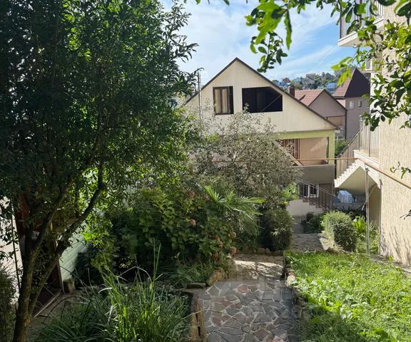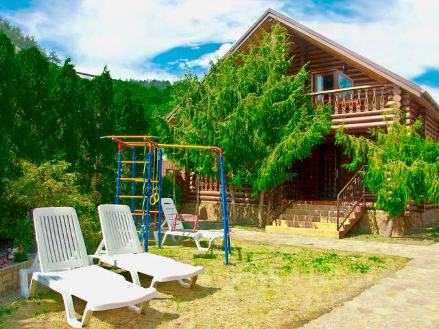 Дом из сруба расположен в тихом, живописном месте, с необыкновенным воздухом, в шаговой доступности до реки Псезуапсе, которая в летнее время года тёплая, и очень чистая. Дом сдаться на одну компанию и расчитан на 8 человек. На территории вы будите одни. Во дворе мангал под большим невесом с столом и креслами из дерева, садовая качель, каркасный детский бассейн , навес под автомобиль. В доме спальня с отдельным входом с террасы, в ней двуспальная кровать, шкаф, телевизор с спутниковыми каналами, прикроватная тумбочка и зеркало, кондиционер. На мансарде две односпальные кровати и одна двуспальная, два камода, журнальный столик, кондиционер. С мансарды выход на балкон, на котором два кресла и столик. В гостиной : диван- кровать, стол и лавочки из массива ясеня, камин на дровах который дарит атмосферу тепла и уюта. Кухня оборудованная всем необходимым для самостоятельного приготовления пищи и посудой для приёма пищи ( нет только духовного шкафа). Так же, на первом этаже есть баня. В бане: парная с финской речью на дровах, душ, обливальное устройство и купель с холодной водой. Баня топится с подсобного помещения за отдельную плату, стоит 2000 за три часа. Проживание с животными возможно, но необходимо обсудить. Успейте забронировать, всегда рады гостям!