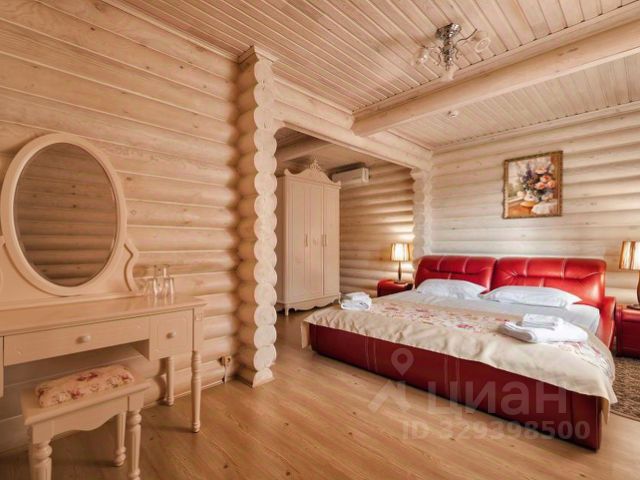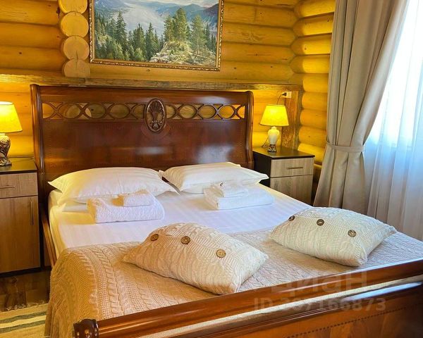 Спальня - одна двуспальная кровать 180*200 см, прикроватная тумбочка, туалетный столик, гардероб с вешалками, обеденный стол, 5 стульев, телевизор, кондиционер, гладильная доска, утюг.