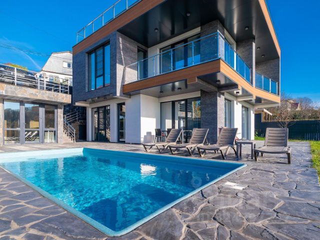 Всесезонно сдаётся шикарный ДОМ с ПАНОРАМНЫМ ПОДОГРЕВАЕМЫМ БАССЕЙНОМ , ГИДРОМАССАЖНЫМ СПА БАССЕЙНОМ и ФИНСКОЙ САУНОЙ, в Лазаревском, размещением до 8 человек.