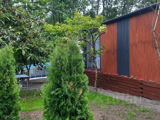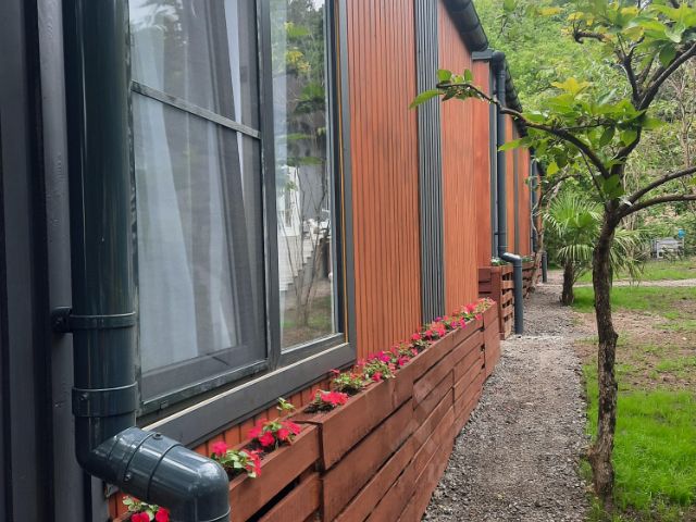 7. Отельный домик с сауной, просторная летняя кухня, парковка для 3-х автомобилей, автоматические ворота, летняя мебель, озеленение пальмы, вечернее освещение.