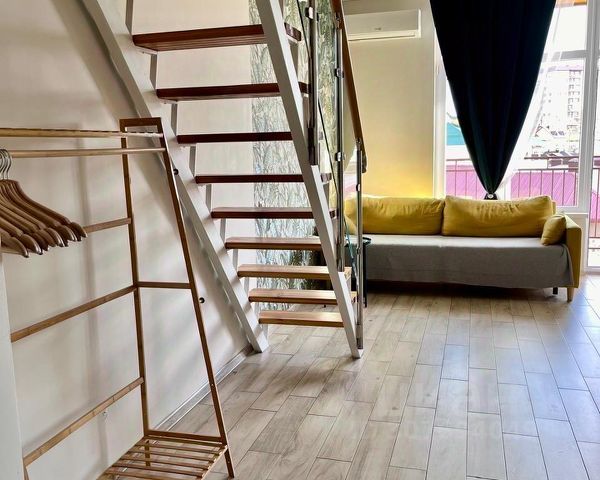 Стильная студия для 4-х человек в пгт Сириус в Олимпийском парке в пешей доступности к морю (1,2 км). Студия двухуровневая в ЖК Грин Сейл Парк на ул. Веселая.