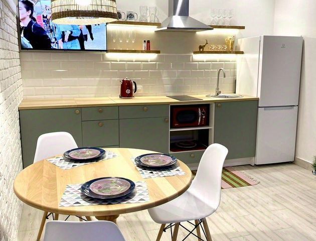 Квартира свежая, после качественного ремонта: стильная кухня-гостиная, удобная зона для сна, большой балкон. Всё необходимое уже есть: кондиционер, Wi-Fi, стиральная машина, холодильник, индукционная плита, микроволновка, телевизор, полный набор посуды и текстиля. Чисто, аккуратно, запах нового ремонта.