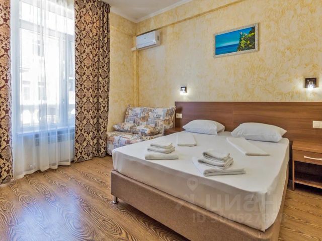 Кто уже побывал в центре современного города-курорта Сочи, тот возвращается именно сюда. Лучшее местоположение - в шаговой доступности лучшие пляжи (муниципальные, частные), достопримечательности, чистота и красота! Привыкли к комфорту? Тогда Вам к нам!!! Вид на море, горы гарантирован! Уютный однокомнатный номер 35 кв. м. на 5 мансардном этаже. В номере: 1 двуспальная кровать, 2 односпальные кровати, трюмо, журнальный стол, набор посуды, стулья, кабельное ТВ, шкаф-купе, холодильник, кондиционер. Ванная комната с душем. Вид на внутренний двор, бассейн, море, горы. Рядом с номером находится обзорная площадка - отрытая терраса с прямым видом на море (для гостей доступна пляжная мебель: стол, кресла, лежаки). На летний сезон 2025 года предлагаем к посуточной аренде уютные, светлые и самое главное — ВИДОВЫЕ номера разной площади, рассчитанных на размещение до 6 человек включительно. Полностью оснащенная всем необходимым кухня, шезлонги, бассейн, детская площадка, столики, парковка — в распоряжении гостей. На территории дома имеется мангал, оборудованный всем необходимым для приготовления шашлыка. Рядом с бассейном или на собственной террасе Вы сможете позагорать на шезлонгах, любуясь видом открытого моря. В нашем гостевом доме небольшое количество номеров (экономов нет), поэтому спокойный и комфортный отдых будет обеспечен. На территории также можно посетить хаммам с бассейном, спа салон, кафе за отдельную плату. Особенностью данного гостевого дома является его местоположение — центральная часть города Сочи! До парка и пляжа Ривьера, Морского порта, Платановой аллеи, Вы сможете добраться на транспорте менее, чем за десять минут. Также муниципальный пляж Альбатрос открыт для круглогодичного посещения. Остановка общественного транспорта, магазин Магнит напротив. Местонахождение нашего гостевого дома подразумевает комфортное передвижение по ровной поверхности. — минимальный срок бронирования 3 ночи. Стоимость указана на сентябрь 2025г. Звоните, пишите, чтобы получить актуальную информацию на интересующие Вас даты.