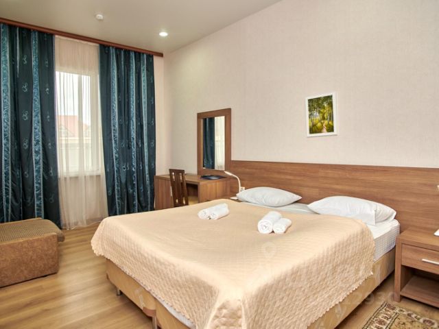 Комфортный номер для проживания семьи от двух до четырех человек или двух отдельных семей. Данный номер состоит из двух комнат. В одной комнате (спальня) располагается двуспальная кровать с ортопедическим матрасом, прикроватной тумбочкой, шкафом для одежды, ЖК телевизором, кондиционером, ванной комнатой. Во второй комнате-студии находится двуспальный диван-кровать, холодильник, а так же полноразмерная кухня в которой имеется все необходимое для приготовления пищи. Номер укомплектован постельным бельем и банными полотенцами. В ванной комнате: туалет и душ с постоянной подачей холодной и горячей воды.
