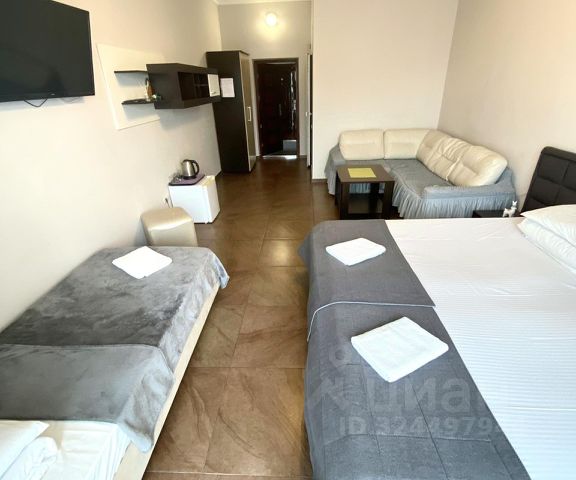Откройте дверь в мир уюта и комфорта с нашей превосходной студией, расположенным в живописном уголке адлера. Здесь каждый элемент интерьера создан для того, чтобы ваш отдых был незабываемым. Апартамент находится на территории апарт-отеля "miror". Вид на бассейн и зеленую территорию отеля. Прогулки среди реликтовых деревьев, которые растут здесь принесут неповторимое удовольствие. Особенности нашего предложения: — адрес: ул. Кирова, 95 — 20 м² изысканно обставленного пространства, — спальные места: два спринг-бокса, которые трансформируются в двуспальную кровать размером 160*200см. — чайная станция и посуда на 2 персоны. Мини холодильник. Утюг и гладильная доска, сушилка, мини-сейф, шкаф для одежды. — санузел: стильный и функциональный, оснащенный всем необходимым для вашего удобства, включая фен. Технологии для комфорта: — wifi и телевизор: поддерживайте связь с миром и наслаждайтесь любимыми шоу. — кондиционер: создайте идеальный микроклимат в любое время года. Дополнительные удобства: — детская площадка: развлечения для самых маленьких гостей прямо на территории. - Бассейны: два взрослых и один детский. - Сауна располагается рядом с бассейном. — инфраструктура: все необходимое для комфортной жизни в шаговой доступности, включая магазин и аптеку. Зеленая ухоженная территория Условия аренды и проживания: — страховой депозит: 5000 рублей, который будет возвращен вам при выезде. Правила для гостей: — возрастные ограничения: приветствуем гостей старше 20 лет. — тишина и порядок: соблюдение спокойствия в ночное время для комфорта всех жителей комплекса. Курение запрещено! — выезд до 12: 00 — заезд после 14: 00 Мы заботимся о каждой детали, чтобы ваше пребывание было максимально приятным. Забронируйте номер уже сегодня и погрузитесь в атмосферу гостеприимства и комфорта, которую мы создали специально для вас!