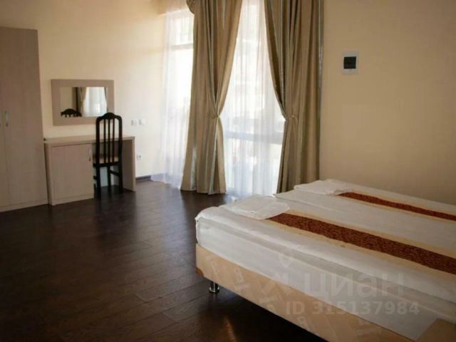 Уютная студия с дизайнерским дорогим ремонтом в 100 метрах от пляжа. Есть свой бассейн! Кому же подойдёт эта студия? Тому, кто едет в сочи насладиться морем, солнцем, прогулками по набережной и устал от стирки и готовки дома! Тому, кто хочет в самую жару полежать в прохладном номере, а вечером искупаться в чистейшем бассейне с подсветкой. Тому, кто любит, что бы всё было на высшем уровне! Отделка, материалы, мебель, постельное бельё и посуда! Всё самого высокого качества! Что есть в нашей студии? Большая двуспальная кровать с дорогим ортопедическим матрасом. Большой раскладной диван Дорогое постельное бельё и полотенца Огромный телевизор Посуда на четверых Микроволновка Чайник Холодильник Интернет В студии нет стиральной машинки и нет варочной поверхности! Поэтому в прекрасно отдохнёте от стирки и готовки!: ) Нет балкона, поэтому вам не помешают шумные соседи! Окна выходят на северную сторону в сторону лестницы, поэтому в номере всегда прохладно и тенёк! А плотные шторы создадут интимную обстановку! Да... Есть нюанс... Совсем нет отзывов... Номер ещё не сдавался... Только закончен ремонт. Вы будете первыми!: )