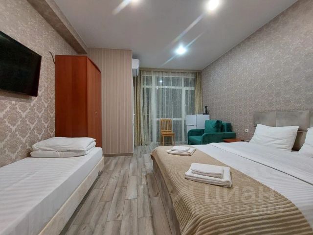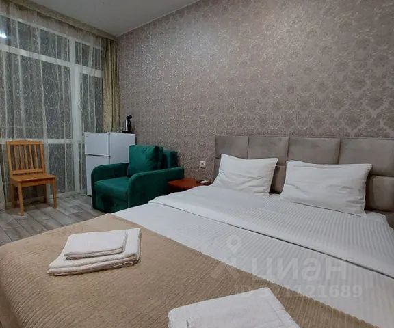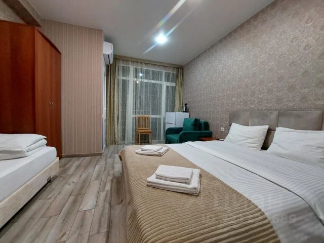 Сдаем уютную студию с дизайнерским ремонтом Квартира расположена в паре минут ходьбы до пляжа, прекрасный вид из номера. Для вашего комфортного отдыха есть: кухня,кондиционер, холодильник, микроволновка, душ, полотенца и постельное белье. Территория дома закрытая. Сам дом расположен в курортном городке, рядом все курортные развлечения, столовые, магазины, транспорт. При заселении взимается депозит в размере 4 000 руб. За сохранность номера.