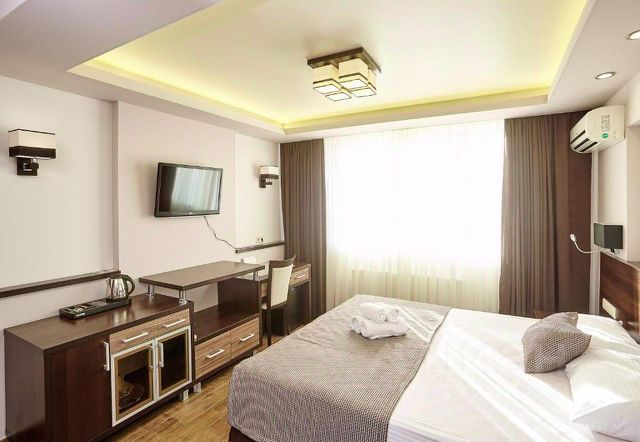 Отель "Империя" находится в Центральном районе Адлера. Спокойный, уютный отель расположился на берегу Черного моря. Наши гости любят отель за красоту окружающих видов, ценят за уют. Мы гарантируем своим гостям качественный отдых круглый год. В шаговой доступности расположены пляжи, набережная, ТРЦ "Мандарин". К услугам гостей круглосуточная стойка регистрации и бесплатный wi-fi. В отеле есть лифт. Персонал отеля всегда готов помочь. Питание организовано в столовой на территории отеля. Бесплатный Wi-Fi доступен повсеместно. Номерной фонд предлагает размещение в 42 номерах различных категорий. В каждом из них установлен необходимый набор мебели, ЖК-телевизор, кондиционер, холодильник, имеется собственная ванная комната. Некоторые номера имеют балконы, вид на море или горы. В округе можно посетить множество кафе и ресторанов с разнообразной кухней. Расстояние до аэропорта 3,4 км. Рядом с отелем находятся музеи, соборы, парки отдыха и прочие развлечения. Поблизости находятся кафе и рестораны, такие как "Империя", "Пармезан Паста Бар", "Бургер бир" и Huracan, предлагающие разнообразную кухню. В 600 метрах от отеля расположен развлекательный центр "Мандарин" с детской площадкой, аквапарком и множеством ресторанов и баров. В окрестностях также находятся Адлерский маяк и река Мзымта. Городской галечный пляж с шезлонгами и водными развлечениями находится неподалёку. Для отеля "Империя" характерно отличное расположение, отель подойдет каждому туристу, так как богатая инфраструктура рассчитана на любого гостя, от путешествующих в одиночку, семейных пар с детьми, так и для любителей ночной жизни, музыки и вечеринок. За отдельную плату можно заказать трансфер от/до аэропорта. Номер рассчитан для размещения до четырех гостей. Номер оснащен одной двухспальной кроватью, раскладным диваном, шкафом для одежды, прикроватными тумбочками, журнальным или косметическим столиком, зеркалом. Для комфортного отдыха в номере имеется: балкон, собственная ванная комната, сплит-система, мини-холодильник, телевизор, чайник, фен, постельное белье, полотенца для лица, тела, ног. В зимнее время работает отопление.