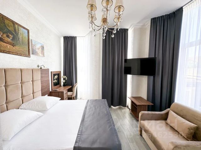 Трёхместный номер студио это комфортный номер для двоих-троих гостей с собственной кухонной зоной в номере. Она оснащена мойкой для посуды, электроплитой, набором посуды. Спальные места - удобная двуспальная кровать и раздвижное кресло. Расположение номеров с второго по третий этажи. На полу современное напольное покрытие керамогранит или кварц винил. В номере имеется холодильник, телевизор, кондиционер сплит-система, фен, шкаф для одежды, прикроватные тумбочки, журнальный столик, электрочайник, бокалы. В номере собственный санузел, в котором установлена душевая кабина. Номера комплектуются набором полотенец на каждого гостя (банное, лицевое) и полотенце для ног. В ванной комнате есть косметические принадлежности: мыло, шампунь, гель для душа. В номере без предоставления дополнительного места и без дополнительной оплаты может проживать один ребенок в возрасте до 4 лет.
