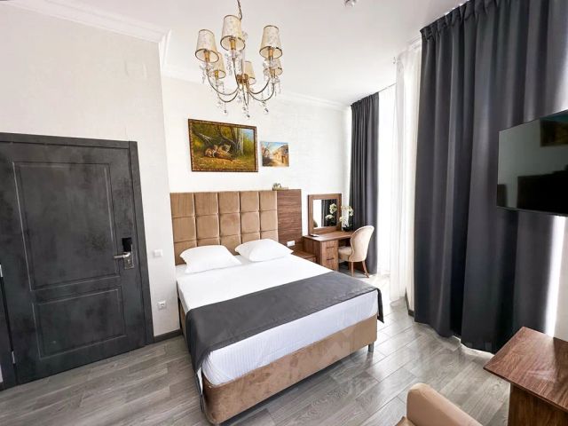 Просторный двухместный номер с одной кроватью на 160 и диван- кроватью для проживания от 1 до 4 туристов. Есть варианты доп места за доп плату. Туалетный столик, тв панель, кондиционер, wifi. В номере высокие потолки, панорамные окна, есть выход к бассейну. Туалетные комнаты оснащены всем необходимым: ванна или душ, фен, туалетные и косметические принадлежности. Три номера этой категории объединяет огромный холл с диванами и обеденным столом, кухня -микроволновка, газовая плита, духовка, холодильник, вся необходимая посуда, посудомоечная машина, утюг. И выход на просторную смотровую площадку, где можно загорать и любоваться красивыми видами! Парковка для машины, трансфер летом до моря, зимой до горнолыжных курортов.