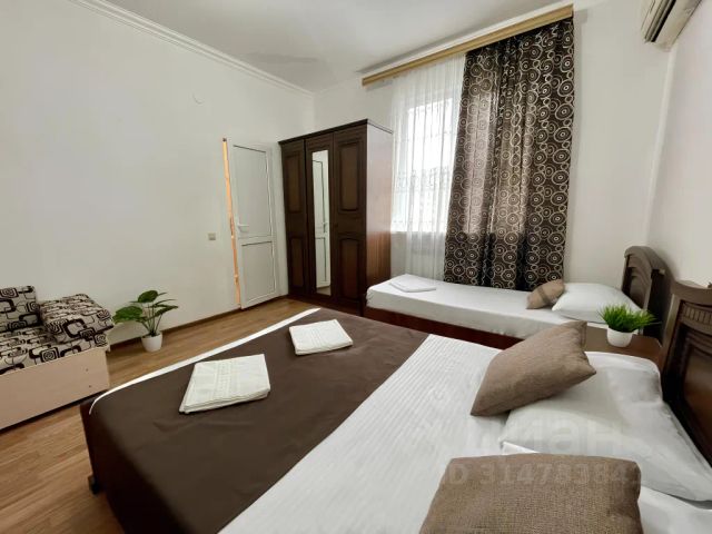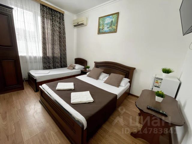 Семейный номер, вместимостью до 6 человек. В номере: - двуспальная кровать - односпальная кровать -2шт - 2 доп. спальных места (раскладушка или кровать, по запросу) - шкаф - тумбочки - зеркало - личный санузел рядом с номером (он только ваш, туда больше никто не ходит. Можно закрыть на ключ) - полотенца, постельное белье - телевизор - кондиционер -балкон - в стоимость входит завтрак. Наш гостевой дом "Селена" находится в 500 метрах до лучшего пляжа Лоо (10 минут пешком)! Выход на пляж через надземный переход, на оборудованный и комфортный пляж с лежаками и кафешками. Гостям предлагается проживание в светлых и чистых комнатах со свежим ремонтом. Предоставляется мягкое постельное белье и полотенца для каждого гостя. В каждой комнате: кондиционер, санузел, телевизор, высокоскоростной интернет, зона отдыха на балконе. Для вашего комфорта мы включили вкусный завтрак в стоимость номера. В доме есть кухня для самостоятельного приготовления пищи, оборудована холодильниками, микроволновой печью, необходимой посудой, обеденными столами. На территории много зелени и цветов, имеется мангальная зона, детская площадка, бесплатная парковка во дворе (при наличии мест) или на улице, за территорией. Мы предоставляем бесплатный трансфер от жд ЛОО. Рядом с нами: Аквапарк ЛОО, дельфинарий, Византийский храм, 33 водопада, Ущелье ведьм, Чайные плантации, Сочи (20мин на электричке).