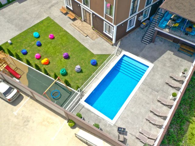 Вам очень понравится у нас! Номера оборудованы звуконепроницаемыми окнами. Эксклюзивный дизайн и насыщенные яркие тона всех номеров создают неповторимую атмосферу сочетания стиля и комфорта. Номера с потрясающим видом на Черное море, олимпийские объекты, частный бассейн сделает Ваше пребывания в нашем отеле приятным и комфортным. В Вашем распоряжении во всех номерах роскошная ванная комната с душевой кабиной, феном и косметическим зеркалом, а также всеми гигиеническими принадлежностями (гель, мыло, зубные щетки). Всегда чистые халаты, тапочки и полотенца к вашим услугам. Также на территории имеется бассейн с подогревом (9х4 м, глубиной 1,5 м), сауна и для гостей с детьми - игровая площадка. Наш ресторан на территории гостевого дома вобрал в себя все сливки современных тенденций и благородных традиций второй южной столицы: смешанную кухню, интеллигентное обслуживание и демократичные цены. Отведайте блюда местной и мировой популярной кухни из натуральных и свежих российских продуктов без ущерба для кошелька. Во всех номерах оборудованы индивидуальной системой климат-контроля, есть бесплатный выход в интернет через WI-FI, принадлежности для приготовления кофе/чая, чайник и кухонная плита, телевизор с плоским экраном с кабельным телевидением, звуконепроницаемые окна, обеденный стол, кухонная посуда и принадлежности. Вы можете заказать еду в номер по меню. У нас 4 типа номеров: 1. Двухкомнатный четырехместный номер "Люкс" имеет площадь 30 кв.м. - спальня с одной двуспальной кроватью King-Size и гостиная с раскладным диваном. 2. Двухместный стандартный номер с одной большой двуспальной кроватью и кухонной зоной. 3. Двухместный стандартный номер с одной большой двуспальной кроватью и раскладным диваном в кухонной зоне. 4. Двухместный стандартный номер с двумя односпальными кроватями и кухонной зоной. Расстояние до: Олимпийского Парка • 8 км (7 минут на машине) Аэропорт Сочи • 9 км (10 минут на машине) Горного курорта Роза хутор • 50 км (40 минут на машине) ЖД вокзала Адлер • 10 км (13 минут на машине) ЖД вокзала Сочи • 33 км (32 минуты на машине) Также рядом снами: Смотровая башня горы Ахун • 17.5 км Крепость Абаата • 23.1 км Замок принца Ольденбургского • 23.2 км Приморский парк • 23.7 км Сочинский дендрарий • 24.8 км Порт Сочи • 26.9 км Центральный рынок Сочи • 27.6 км Парк Ривьера • 27.7 км Торгово-развлекательный комплекс МореМолл • 28.1 км Если нужен трансфер, пишите - организуем)