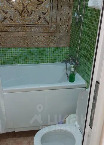 В ванной большое зеркало, фен и гигиенические принадлежности.