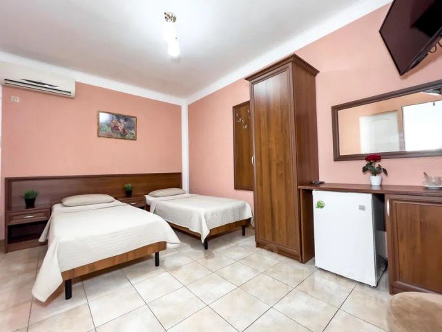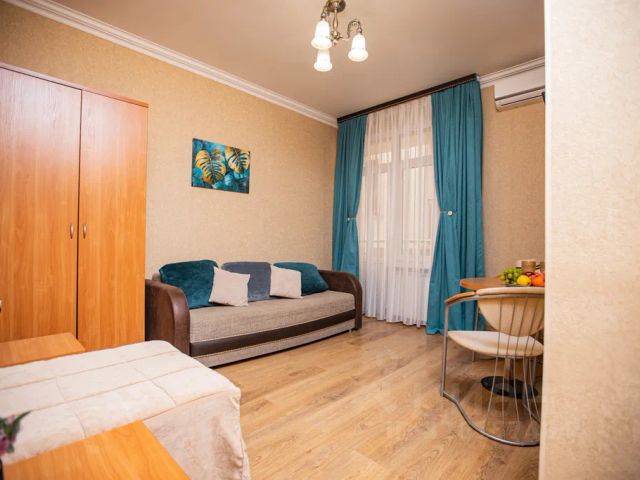 Гостевой дом "4 Горизонта" расположен в живописной горной местности всего в 30 км от Красной Поляны и в 8 км от аэропорта Адлера. Это идеальное место для ценителей природы и отдыха вдали от шума. К распоряжению гостей комфортные номера, в каждом из которых есть балкон и полностью укомплектованная кухня со всем необходимым для самостоятельного приготовления пищи, что очень удобно для семей с детьми. Большинство номеров имеют прекрасный вид на окружающие пейзажи. Для удобства на территории гостевого дома есть бассейн, где можно позагорать и освежиться. Также на территории есть зона для барбекю и площадка со столиками, откуда открывается великолепный вид на окрестности. Для гостей предусмотрена просторная бесплатная парковка. Просторный номер студия с кухней и балконом. Номер оборудован всем необходимым для комфортного проживания: кухня полностью оборудованная техникой и посудой, санузел с душем, раскладной диван, обеденная зона, телевизор и кондиционер.