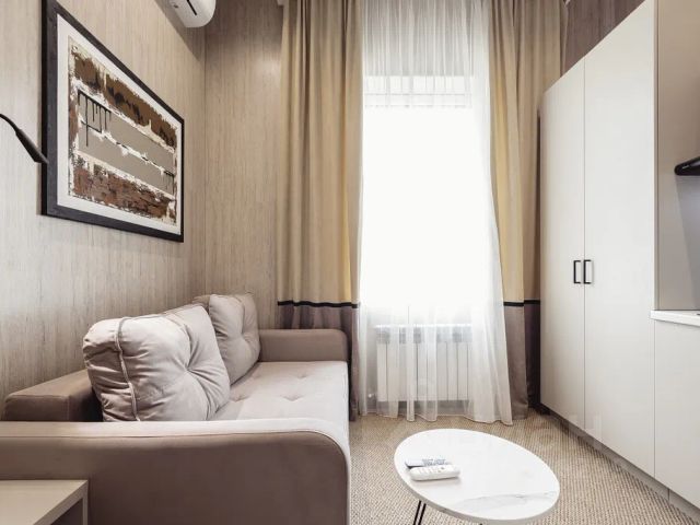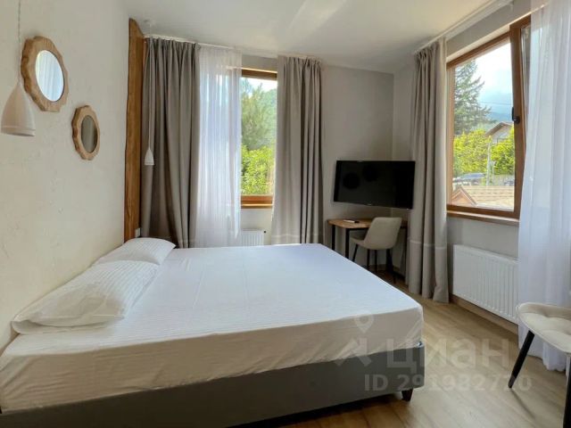 Комфортный однокомнатный номер с двуспальной кроватью, раскладным креслом и окном с видом на горы. Услуга по размещению в номере домашних животных (собака до 7 кг) подлежит дополнительной оплате в размере 1 500 (тысяча пятьсот) рублей в сутки, с октября по апрель включительно, и 2 000 (две тысячи) рублей с мая по сентябрь, включительно. Также вносится возвратный депозит 5000 рублей.