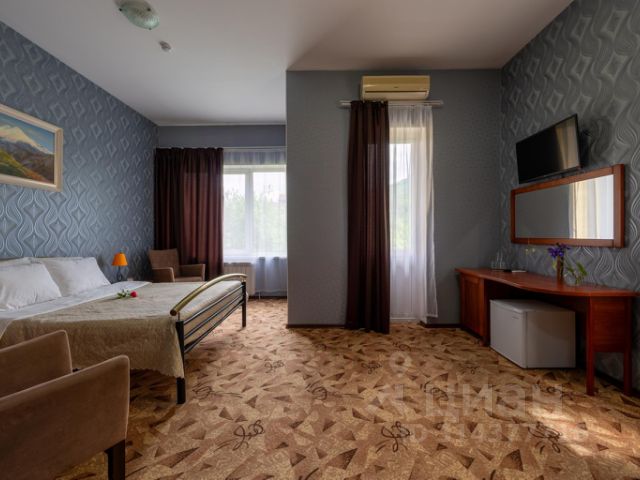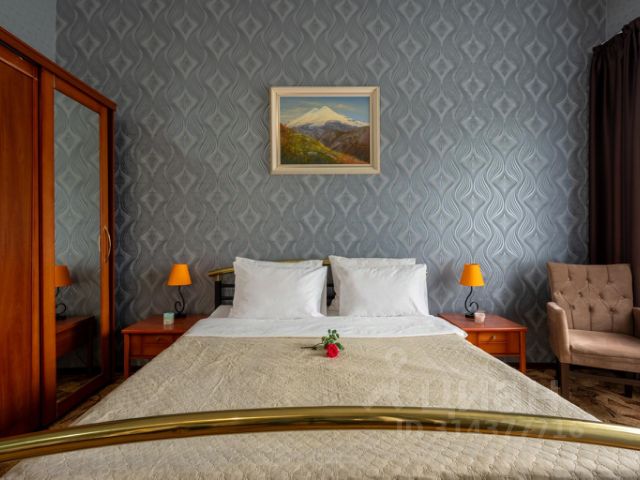 Вид на горы Номера данной категории видовые, из номера открывается потрясающий вид на Кавказские горы. Французский балкон В номерах этой категории есть французский балкон — полностью открывающееся окно с ограждением из стеклянных перил. Балкон позволяет насладиться видом на горы прямо из номера. Кровати на выбор Кровать King size шириной 200 см или две односпальные кровати обеспечат вам отличный сон и отдых после активного дня. А кондиционер, холодильник, ЖК телевизор и санузел с душем обеспечат ваше удобство. Для вашего комфорта Wi-Fi и открытый подогреваемый бассейн доступны гостям без дополнительной оплаты. По запросу предоставим утюг, гладильную доску и сушилку для одежды.