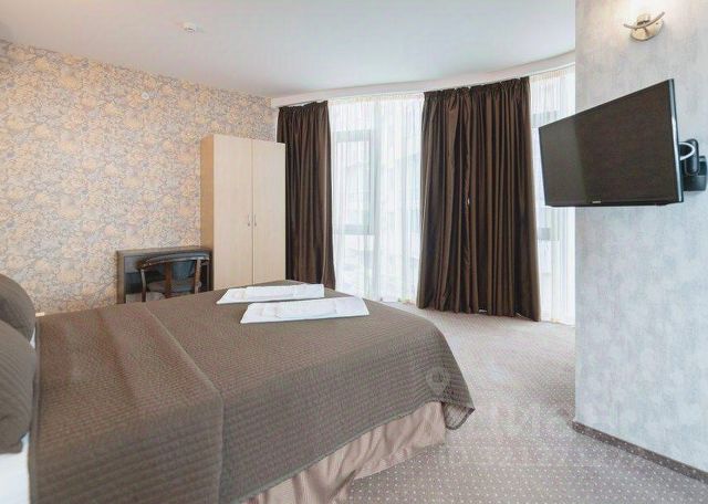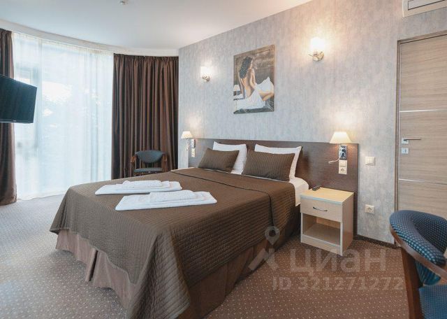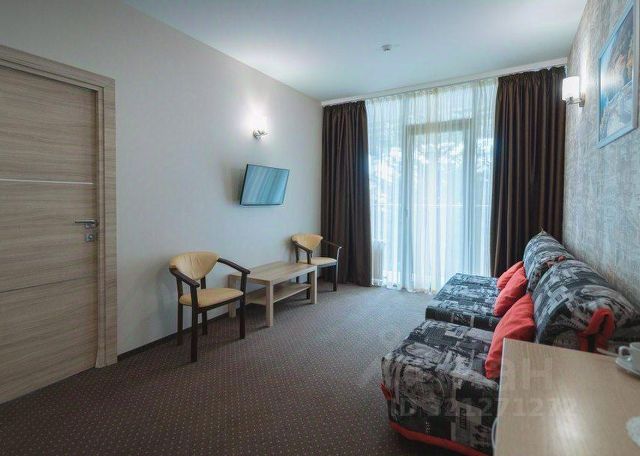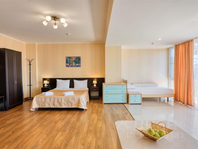 Люкс 3-х комнатный: Трехкомнатный, трехместный, спальня - 21,5 кв. м гостиная - 18,4 кв. м, с раскладным 2-х спальным диваном, спальня - 13 кв. м с односпальной кроватью, санузел - 6 кв. м (ванная, туалет, раковина, фен, гигиенический душ), гостевой туалет - 4 кв. м (раковина, туалет), прихожая - 8,5 кв. м, 2 балкона с видом на море и на лесопарковую зону.