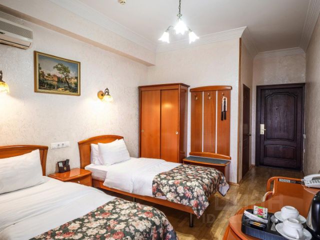 Отель "Чеботаревъ" 4* удобно расположен в центре Сочи там, где сосредоточены основные развлекательные и деловые объекты города. В шаговой доступности находятся: парк "Ривьера", морской порт, центральная набережная, аквапарк, выставочный центр, торговая галерея. Все номера отеля изысканно оформлены в классическом стиле. Для размещения предлагаются на выбор однокомнатные номера повышенной комфортности, стандарты, студии, апартаменты, а также президентский и королевский люксы. Здесь будет уютно и семьям с детьми, и молодеженам. На территории отеля круглый год работает открытый подогреваемый бассейн, SPA-комплекс, сауна, а также бильярдный и тренажерный залы. Есть детская комната. Кроме того, гостей ждет один из лучших ресторанов Сочи "Александр". Атмосфера уюта и комфорта в сочетании с благородством и аристократичностью предлагаемых блюд и напитков создают неповторимую ауру вокруг этого места. В номерах категории Бизнес-стандарт: балкон с видом на город и горы, две односпальные кровати, шкаф, трюмо с зеркалом, прикроватные тумбочки, кресло, комод с посудой, телефон, кондиционер, плазменная панель, ванная комната с душевой кабиной, халат, тапочки, банные принадлежности сделают Ваш отдых еще более приятным. Все номера оснащены системами противопожарной и сейсмической безопасности.