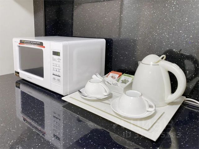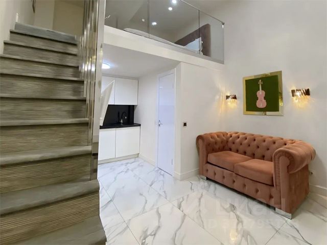 Оригинальная двухуровневая студия. На первом уровне номера расположена гостиная зона: стильная кухня, диван, стол, санузел. На втором уровне номера расположена спальная зона с двуспальной кроватью. В номере имеется микроволновая печь и посуда, приготовление пищи на плите не предусмотрено. В отеле допускается размещение животного до 15 кг, стоимость 1500 рублей/сутки, так же за животное взимается возвратный депозит 3000 рублей.