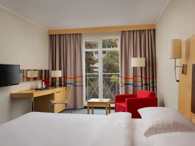 Отель в 1 км от побережья Черного моря и городского пляжа. В летний период до пляжа курсирует трансфер. До Сочинского дендрария можно дойти за 20 минут. Центральный район, пешеходная улица Навагинская, Морской вокзал, концертный зал "Фестивальный" расположены в 4 км. Расстояние до железнодорожного вокзала составляет 4 км, до аэропорта Сочи — 26 км. В отеле 150 уютных номеров категорий Стандарт и Стандарт плюс, в каждом из которых есть все необходимое для комфортного проживания: телевизор, кондиционер, чайный набор, холодильник, письменный стол, шкаф для вещей, собственная ванная комната с феном, комплектом полотенец и косметическими принадлежностями. Из окон отеля открывается прекрасный вид на Черное море, город и Кавказские горы. На всей территории доступен Wi-Fi. В отеле работают кафе "шведской линии" и лобби-бар, в летний период открыт бар у бассейна. На территории к услугам гостей: открытый подогреваемый бассейн, открытый неподогреваемый бассейн в летний и Новогодний период, беседки для барбекю, сауна, детская площадка, детская комната, спортивные площадки, зона для настольных игр, настольный теннис, бильярд, анимационная программа для детей и взрослых. Уютные однокомнатные номера с одной большой двуспальной кроватью и балконом.