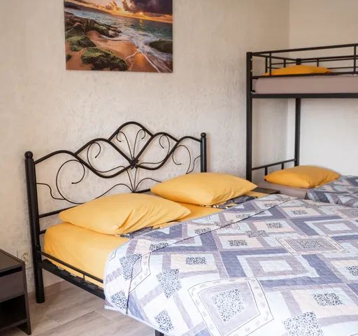 Эконом Четырёхместный площадью 24 кв.м с видом во двор. Подходит для размещения 4 человек. Имеет спальню с приятным интерьером. В номере: 1 двуспальная кровать, 2 односпальные Имеется плотные шторы, телевизор, кондиционер, шкаф, вешалка, зеркало, журнальный столик, корзина для мусора. Общая ванная комната: душ, туалет. В стоимость входит: Постельное бельё, полотенца, мыло. WI-Fi бесплатно на всей территории. Бесплатная частная парковка на территории.