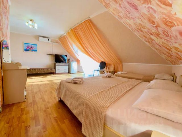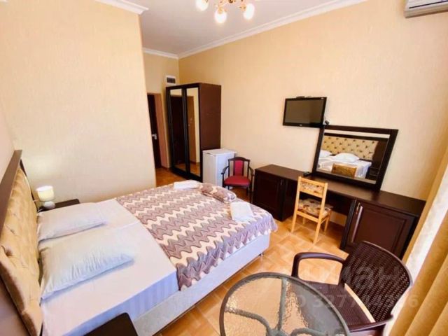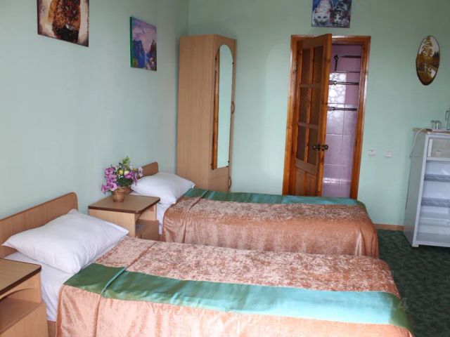 В номере двуспальная и полуторная кровати, прикроватные тумбочки, шкаф для белья, небольшой телевизор, кондиционер, чайник, холодильник, фен. Санузел в номере. Комплект полотенец (2 на гостя). Уборка номеров и смена полотенец происходит через 3 дня или по требованию гостя. Смена постельного белья через 5 дней отдыха. Что у нас есть: Автостоянка: бесплатная перед домом; Бассейн: с подогревом; (режим работы 9: 00-22: 00); Прачечная: услуга постирки 300 руб.; Место для отдыха во дворе; Интернет в номерах: плюс на территории; Кафе: блюда на мангале; европейская кухня (ориентировочное начало работы с ~01. 07) Столовая: завтрак "шведский стол" (в стоимость не входит, возможно будет запущено с ~01. 07-31. 08; Бар: холодные и горячие напитки, кофе, коктейли; Мини-кухня: во внутреннем дворике, небольшая для приготовления лёгких блюд (2 газовые конфорки).