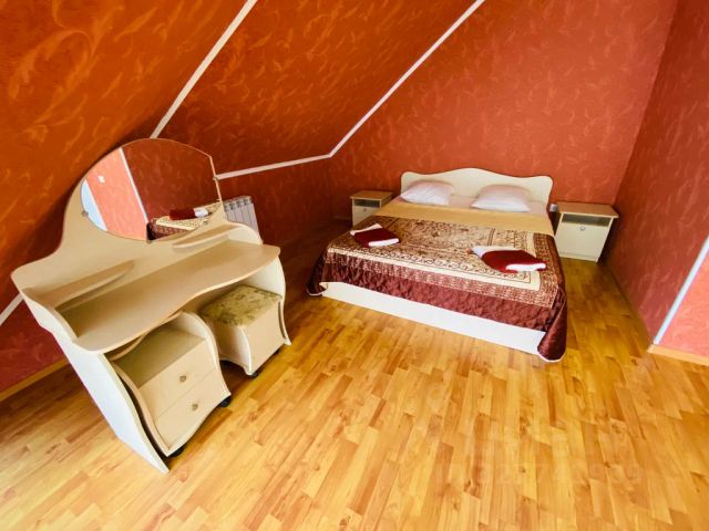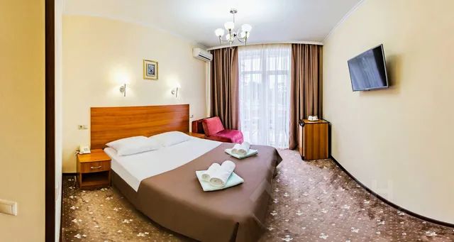 Наш отель находится в гостеприимном и красивом пос.Лазаревский (Сочи)! Отличное расположение предоставит Вам шикарный вид из окон номеров и широкий выбор активного отдыха! Все наши номера располагают всеми удобствами для комфортного отдыха! К услугам гостей: бассейн, ресторан, открытая зона отдыха (беседка), детская площадка, парковка и бесплатный WI-FI на всей территории. Сотрудники круглосуточной стойки регистрации с удовольствием предоставят гостям информацию о местных достопримечательностях и ответят на все вопросы. Мы находимся на доступном расстоянии от моря - 300 м, в пешей доступности от нас: Аквапарк "Наутилус", аптека, супермаркет "Пятерочка", ФиксПрайс, Семейный Магнит, заправка, столовые и рестораны, сувенирные магазины, палатки с курортной атрибутикой (купальники, очки, обувь, головные уборы и т.д.), а также сетевые алкогольные магазины. На первом этаже нашего отеля есть ресторан с Европейской кухней! Паркинг подземный. Светлый, просторный номер и ванной комнатой. Номер оснащен: двуспальной кроватью, диван-кровать, шкаф- вешалка, прикроватные тумбочки, журнальный столик, туалетный столик, зеркало, холодильник, кондиционер, телевизор. Ванная комната: Санузел, душевая кабина, набор полотенец.