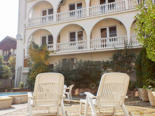 Отель в Адлере, на первой береговой линии Черного моря, в 500 м от Привокзальной площади. Расстояние до аэропорта Сочи составляет 5 км, а до железнодорожного вокзала 60 м. В шаговой доступности находится песчано-галечный пляж "Парус" с лежаками и зонтиками. В 15 минутах езды находятся церковь Сурб Саркис, дендропарк "Южные культуры" и Адлерский маяк. В шаговой доступности от отеля есть рестораны, кафе и закусочные, а также продовольственные магазины и рынки. Отлично подходит для активного отдыха. Для бронирования предлагаются номера категории Стандарт. Номера оснащены комфортабельной кроватью, кондиционером, телевизором, чайным набором, удобной рабочей зоной и собственной ванной комнатой с туалетно-косметическими принадлежностями. К услугам гостей круглосуточная стойка регистрации, общая кухня и камера хранения багажа. Личный автомобиль можно оставить на парковке отеля. Двухкомнатный номер в классическом стиле с просторным балконом и видом на море. В распоряжении гостей собственная ванная комната с ванной, феном, полотенцами и туалетными принадлежностями. 2 комнаты 2 двуспальные кровати / 4 одноместные кровати Письменный стол Письменный стол Кондиционер Холодильник Чайные принадлежности