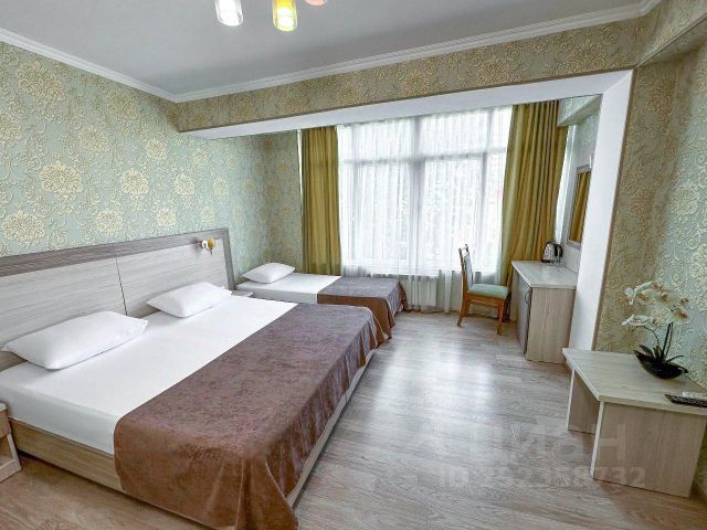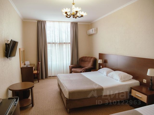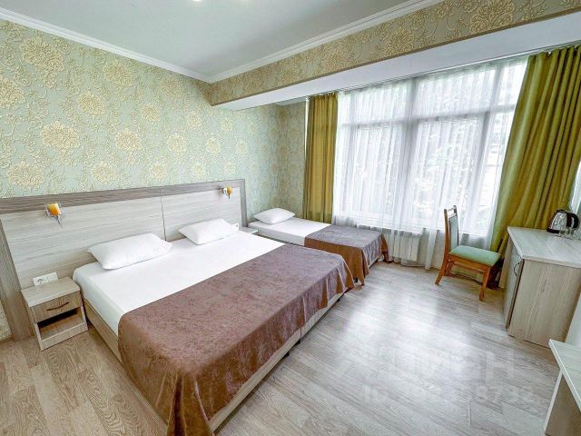 Отель в живописном районе города, недалеко от аэропорта. Прогулка до городского пляжа займет 20 минут. Олимпийский парк и парк развлечений "Сочи парк" находятся в 8 км от гостиницы. До городского пляжа около 20 минут неспешной ходьбы. Расстояние до железнодорожного вокзала составляет 2 км, до аэропорта Сочи — 3 км. Четырехэтажный корпус отеля занимает небольшую благоустроенную территорию. Гости могут забронировать номера категорий Стандарт эконом, Стандарт, Студия, Комфорт, Полулюкс, а также отдельный таунхаус. В каждом номере имеется все необходимое для проживания: удобная кровать, телевизор, холодильник, кондиционер, чайный набор, собственная ванная комната с комплектом полотенец и косметическими принадлежностями. В таунхаусе — гостиная зона, несколько спален, оборудованная кухня с набором посуды и техникой, собственная веранда с мангальной зоной. К услугам гостей на территории гостиницы: уютное кафе с летней террасой и зоной барбекю, открытый бассейн и зона отдыха для загара с шезлонгами и тропическим душем. На всей территории доступен Wi-Fi. Автовладельцы могут оставить машину возле корпуса на парковке. Однокомнатный номер c двуспальной и односпальной кроватями. прикроватными тумбочками. Также в номере имеется шкаф, журнальный столик, телевизор, холодильник, кондиционер. В ванной комнате установлен душ и предоставляется набор косметических принадлежностей.