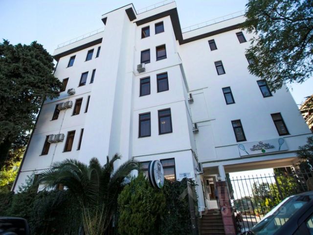 Трёхместный стандартный номер с телевизором, холодильником, кондиционером. Общий санузел рядом с дверью, общая оборудованная кухня на этаже. Есть стиральная машина и утюг с гладильной доской. На первом этаже есть столовая (готовят очень вкусно). До моря 2 минуты пешком! Рядом очень много магазинов, бутиков и аптек.