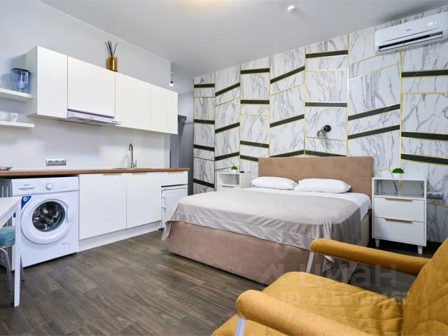 Стильная уютная инстаграмная студия "Тропики" с удобной кроватью с ортопедическим матрасом, тропический душ, кухня, стиральная машина.